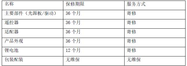 | 光源/驱动 | 3年 |
